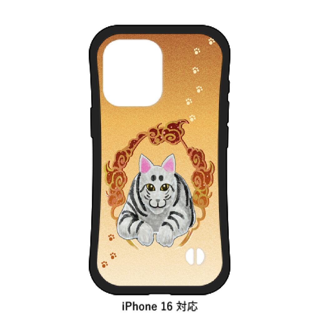 燃えるような暁(あかつき)のグラデーションに、縁起の良い瑞雲(ずいうん)をあしらったデザイン。力強さと優しさが同居する猫神が、持ちやすいくびれのあるボディが特徴のPhone16専用のグリップケースになってあなたの日常に小さな平穏を運びます。